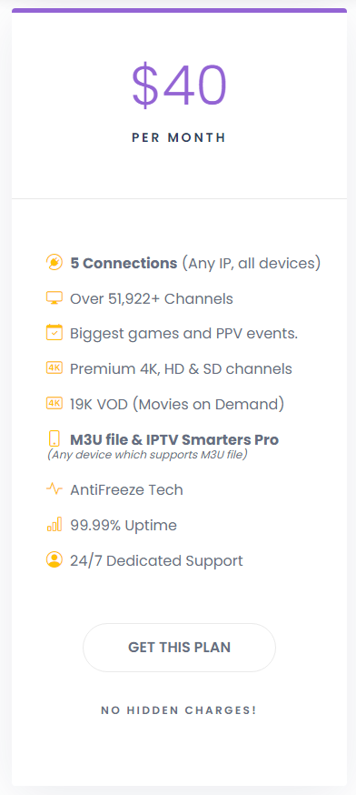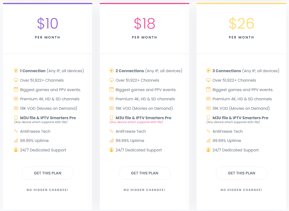 • 99.99% Uptime: We always try to give a better-quality IPTV subscription service to our users.