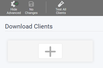 On to setting up the Jackett indexer under settings >> indexers. Click on the plus sign in the box to add a new indexer.